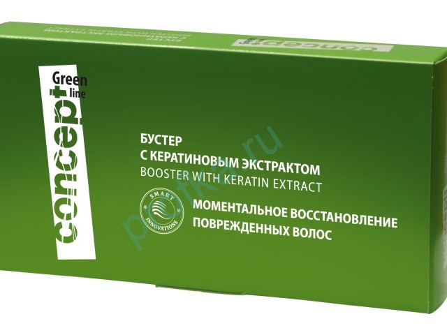 Ампулы с кератиновым экстрактом «Бустер» предназначены для полного оздоровления локонов. В их состав входят активные биокомпоненты, которые предотвращают преждевременное выпадение, за счет активного питания и укрепления луковиц. Уже спустя после нескольких применений пряди приобретают здоровый блеск, а количество выпадений сокращается в несколько раз. Каждая прядь становится послушной и гладкой. Препарат не только питает волосы, но и насыщает их необходимой влагой.