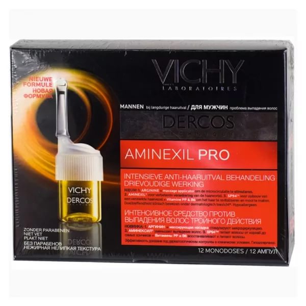 К наиболее эффективным ампулам от выпадения относится препарат «Деркос» от французской компании «Виши». Для женского и мужского пола предусмотрены ампулы с разным составом с учетом физиологических особенностей.