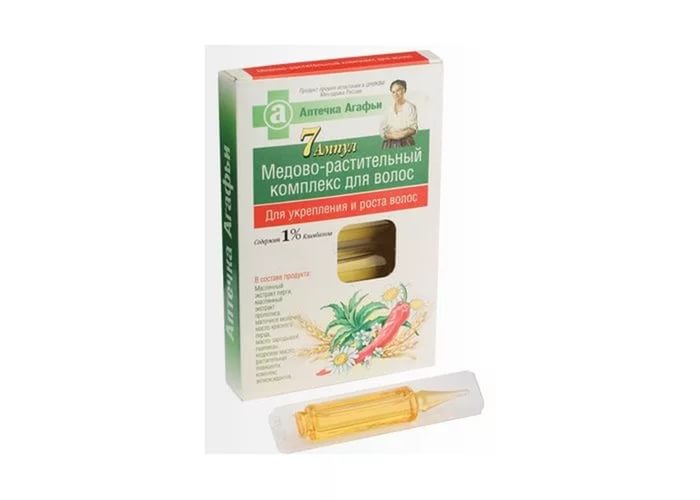 Одним из самых доступных средств для восстановления роста волос являются ампулы «Аптечка Агафьи». Отечественный препарат обладает хорошей эффективностью благодаря своему составу, в который входят преимущественно биокомпоненты на растительной основе.