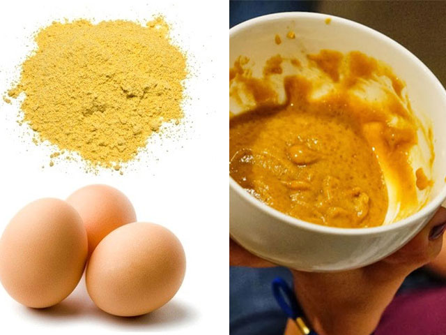 Для этой маски потребуется 0,5 ч. л. бесцветной хны и 1 яйцо. Сырье необходимо залить 1 ч. л. горячей воды, перемешать и добавить яйцо. Состав наносится на корни на полчаса. Чтобы усилить эффекта на голову можно надеть шапочку. Смывать маску нужно шампунем.