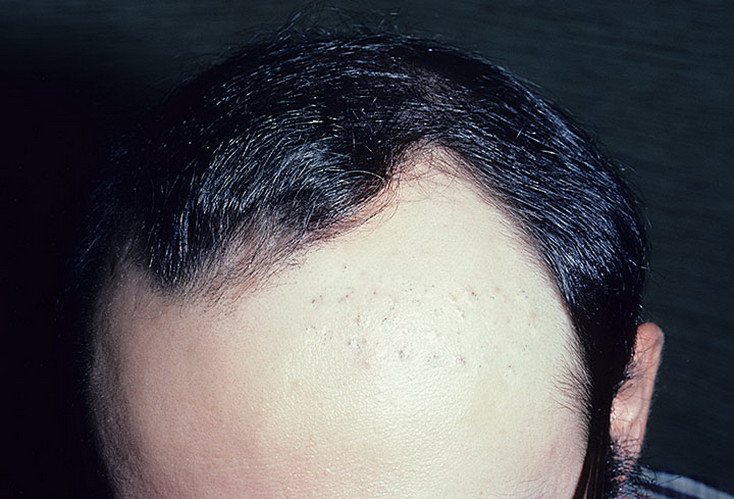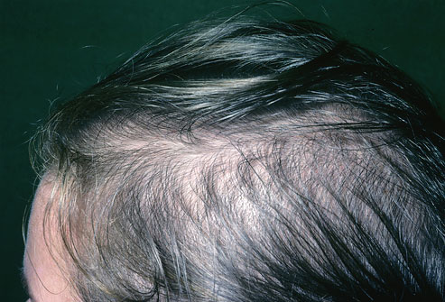 Наследственное облысение у мужчин может проявиться самостоятельно или сопутствовать другим заболеваниям, поражающим кости, ногти, зубы. Этот вид алопеции может начаться еще с момента рождения. Волосы легко обламываются, ресницы и брови редкие. В период полового созревания генетический фактор проявляет себя интенсивнее: выпадение волос у мужчин начинается с теменной области, затем переходит на область висков, за ухо, возникает высокая лобная линия волос.